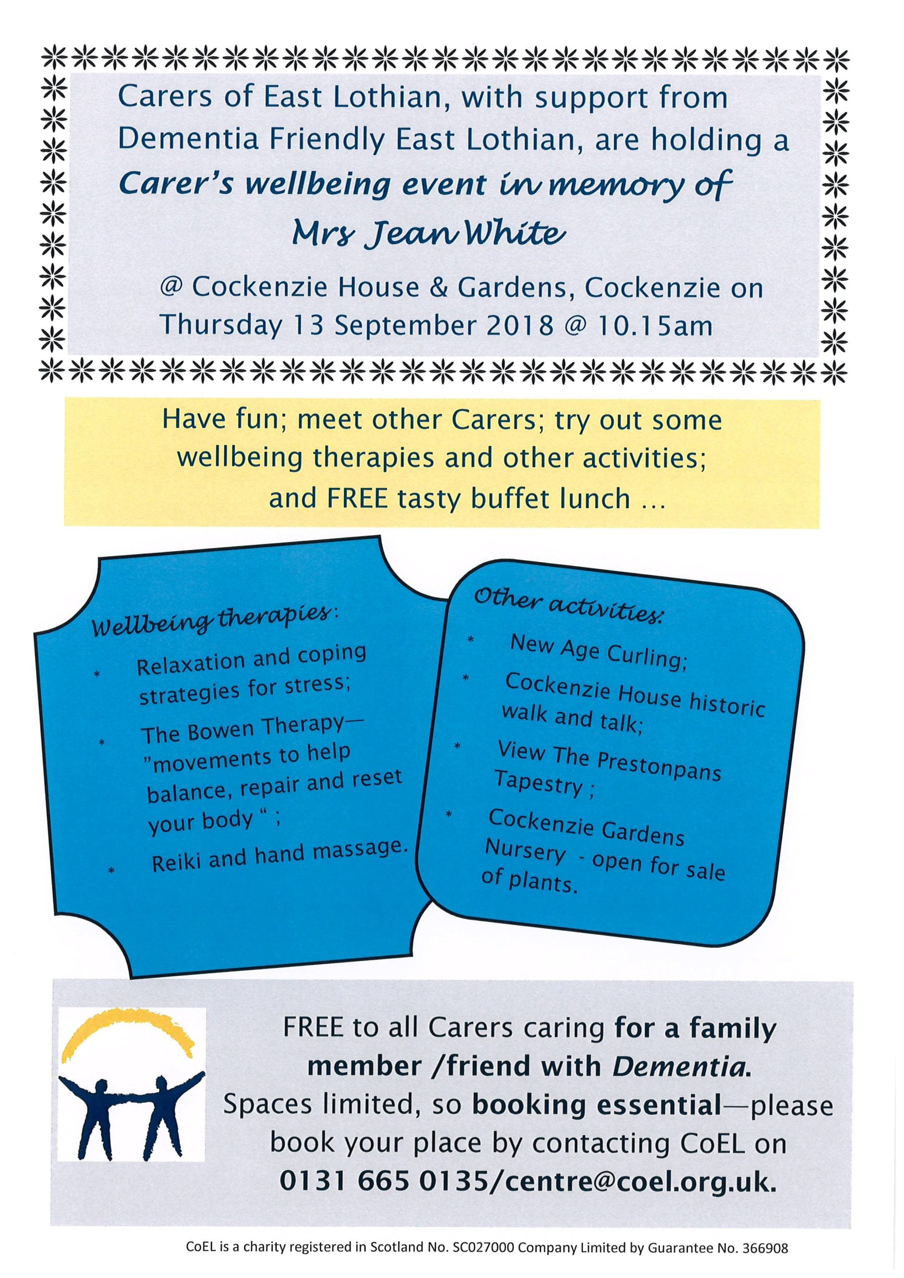 Home » News & Information » Carers Wellbeing Event in memory of Mrs Jean White